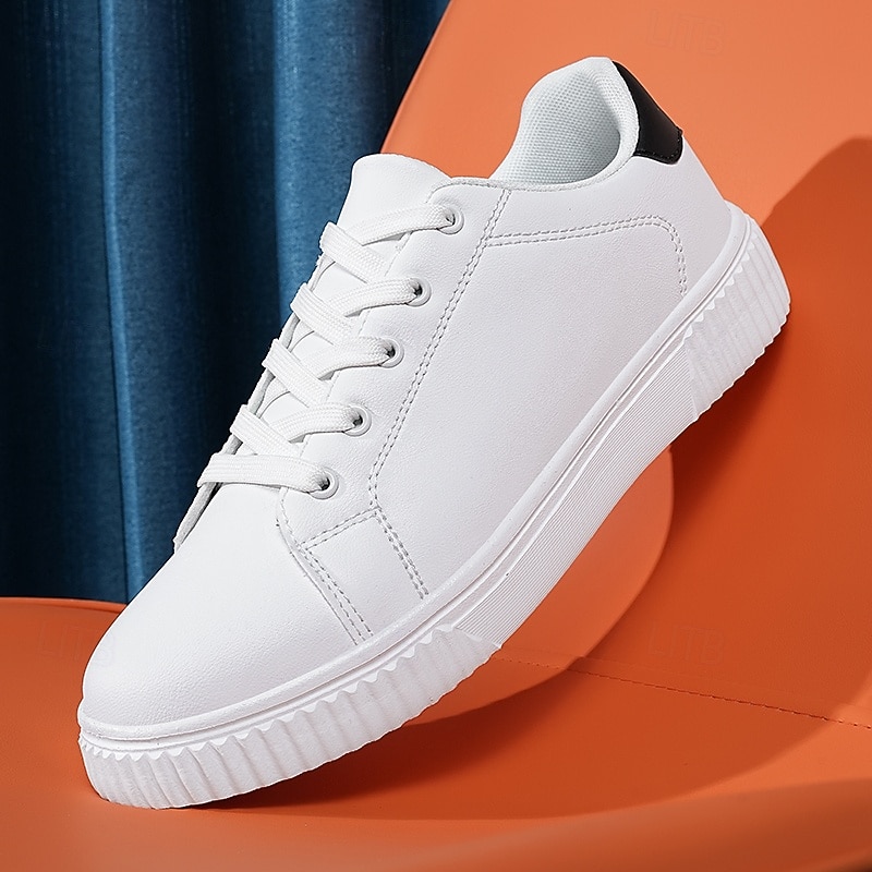 HOT ! Men's Simple White Faux Leather Sneakers - Comfort - Oriented, Ideal for Everyday Use and Sports - casual Occasions
