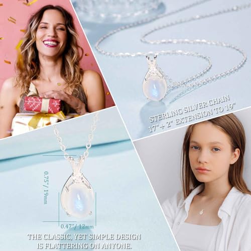• Chain Length & Size: Necklace measures approximately 17" + 2" extension to 19 inches. The moonstone pendant measuring about 0.47" wide by 0.75" tall including the bail, and the pendant is suspended from a delicate sterling silver chain, strong, durable and skin-friendly, perfect for everyday wear.