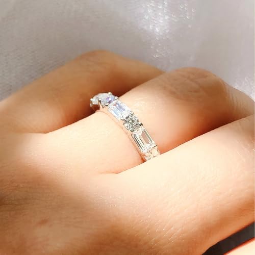 • TIMELESS DESIGN: Make a statement with this bold half eternity ring, showcasing a stunning mix of emerald-cut and round-cut stones for a striking, modern twist on classic sparkle.