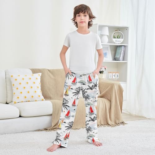 ZZXXB Tropical Sailboat Boys Long Pants Soft Trousers Elastic Waist Kids Lounge Bottoms with Pockets S-XL 4