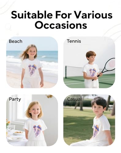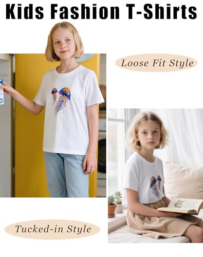 • 【Stylish Design】: Girls summer t shirts designed with a stylish crew neckline and short sleeves, this summer tshirts boasts a for a comfortable and good fit, and showcases a cute playful jellyfish graphic on the chest, adding a whimsical touch of trendy casual summer adventures to your kid’s wardrobe. The loose fit provides a comfortable fit for ease of wear and movement, whether indoors and outdoors.