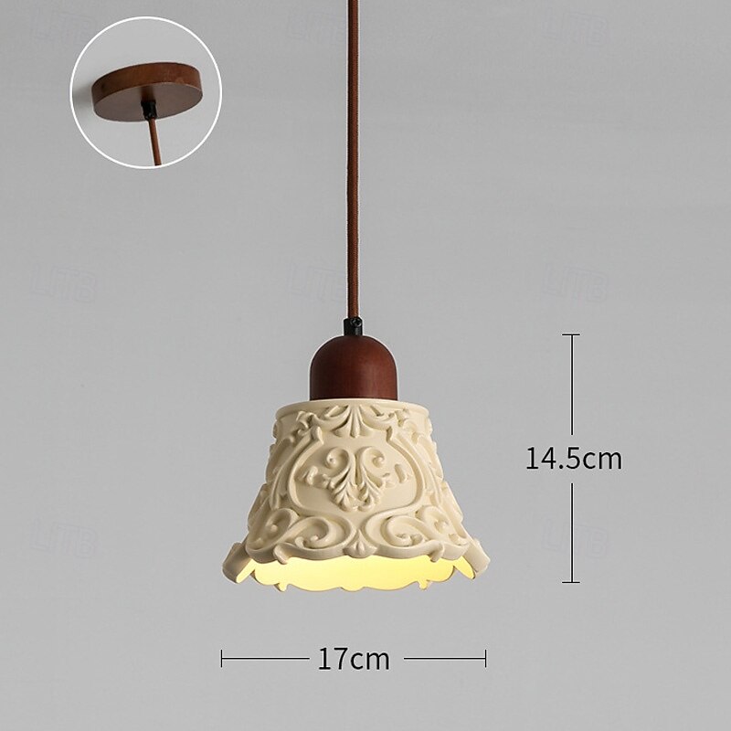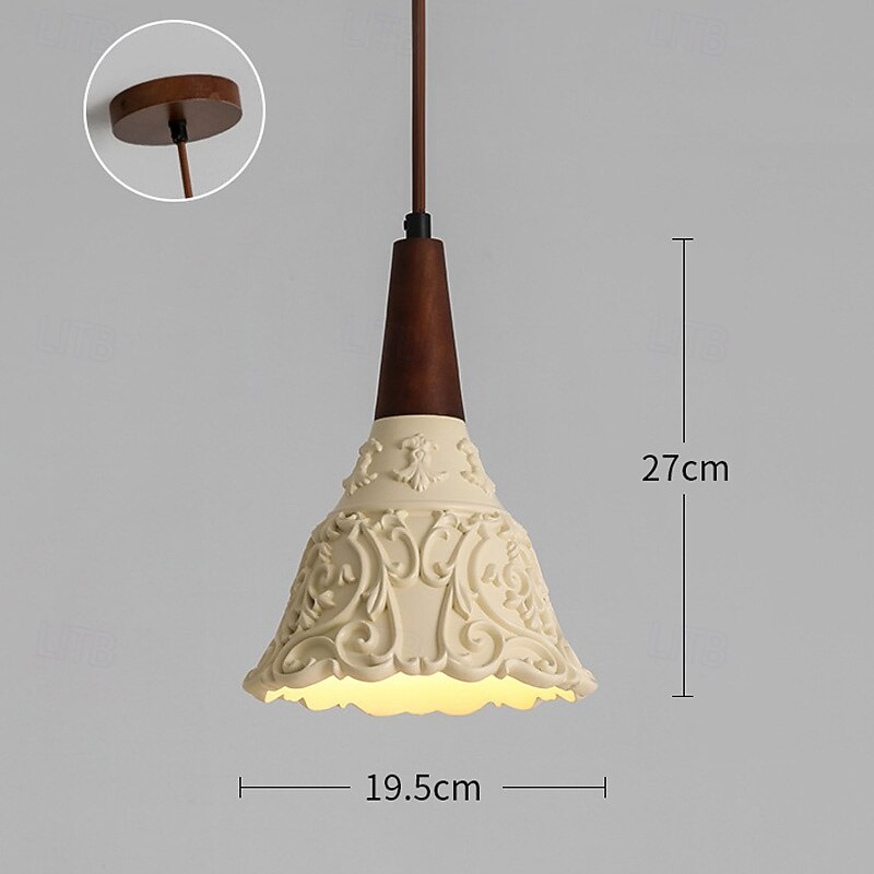 Nordic Beige Resin Pendant Light Pattern Carving with Wood Dining Room Bedroom Suspension Lamp, Modern Lighting 1