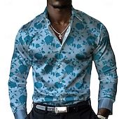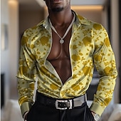 More information about Men's Satin Shirt Dress Shirt Button Up Shirt Floral Formal Vacation Yellow Blue Long Sleeve Turndown Summer Spring Clothing Apparel Buttons