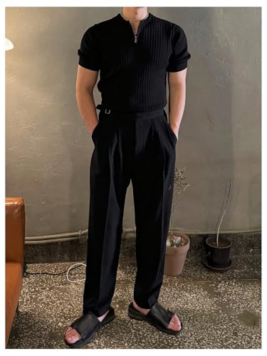 HOT ! Men's 1/4 Zip Pullover Top Ribbed Short Sleeve Sweater Casual Knit Tops