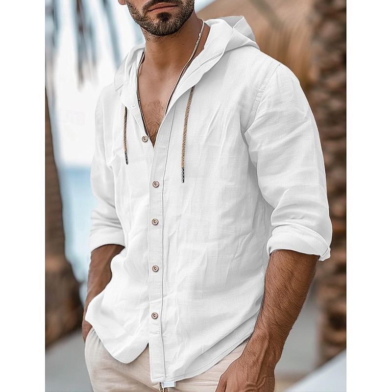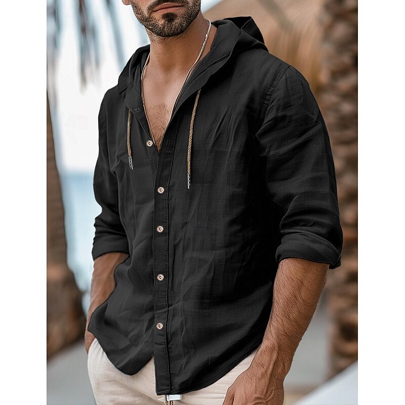 More information about Men's Shirt Linen Shirt Plain Casual Daily Black White Blue Khaki Long Sleeve Hooded Spring & Summer Clothing Apparel Buttons