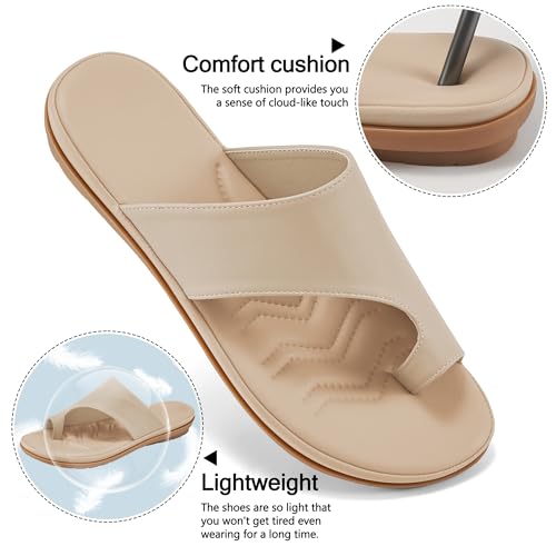 Aomigoct Orthopedic Flat Sandals for Women: Dressy Summer Flats Womens Sandals Comfortable Slip On Beach Walking Shoes 5
