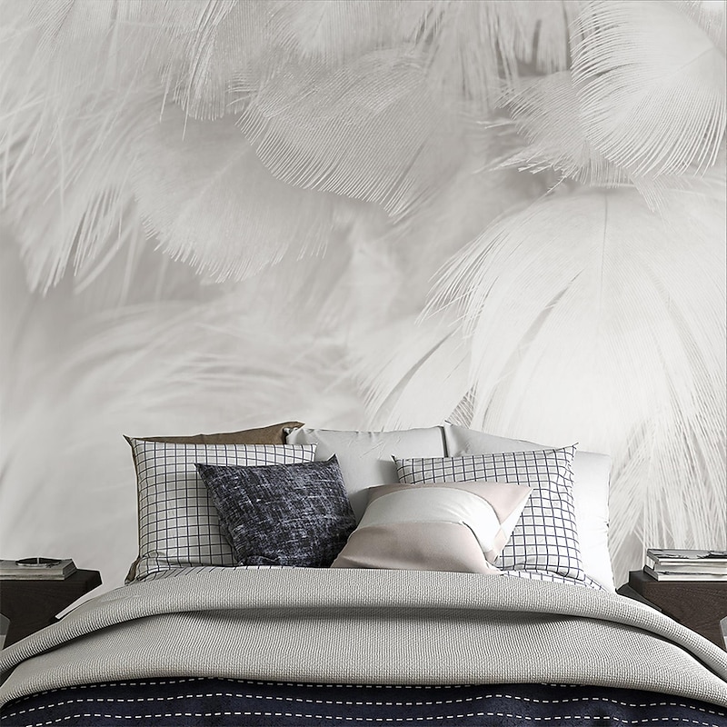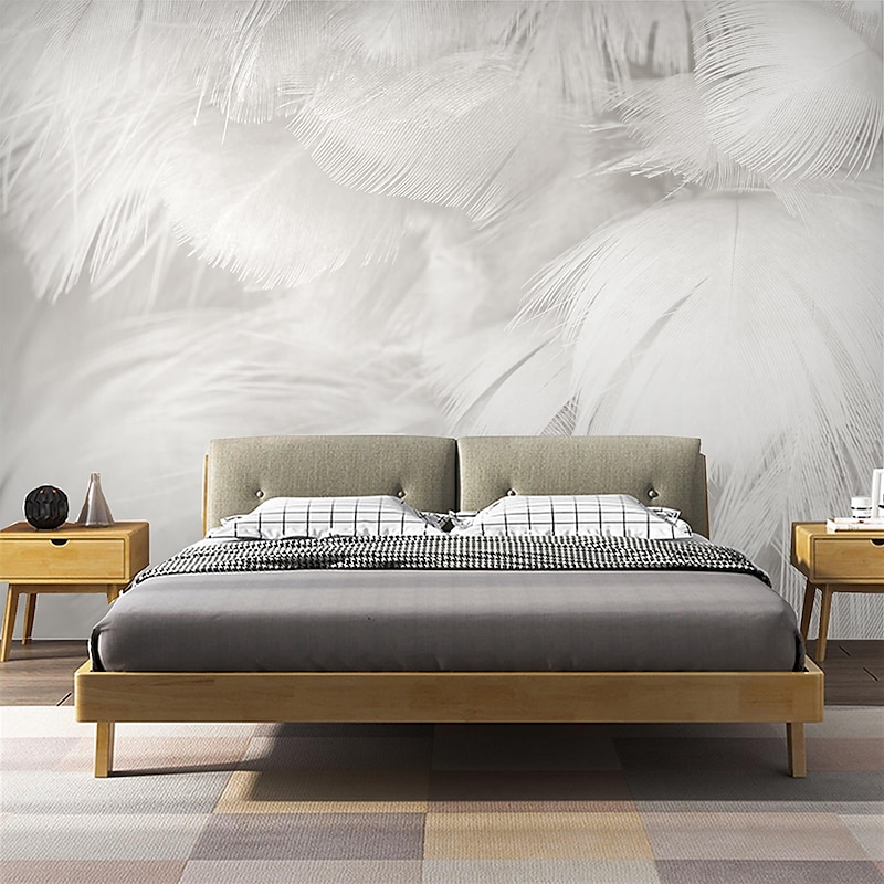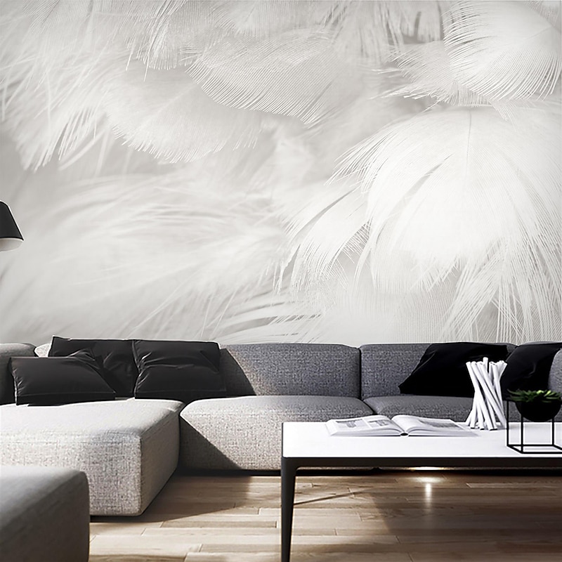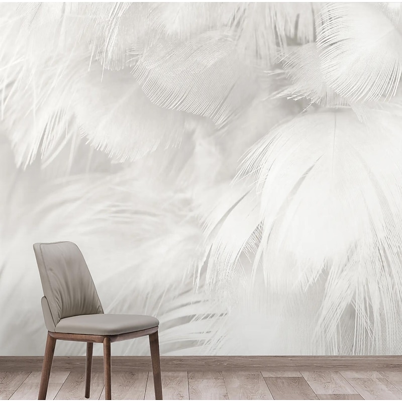 HOT ! Cool Wallpapers 3D White Feather Wallpaper Wall Mural for Living Room Bedroom TV Background Canvas PVC/Vinyl Material Adhesive Required Wall Decor Home Decoratio Wall Cloth