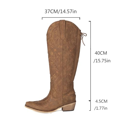 More information about Wide Calf Cowboy Boots Women Knee High Embroidered Western Cowgirl Boot Back Lace Up Chunky Heels Pointed Toe Side Zipper