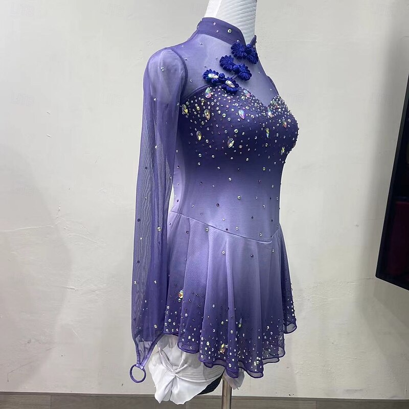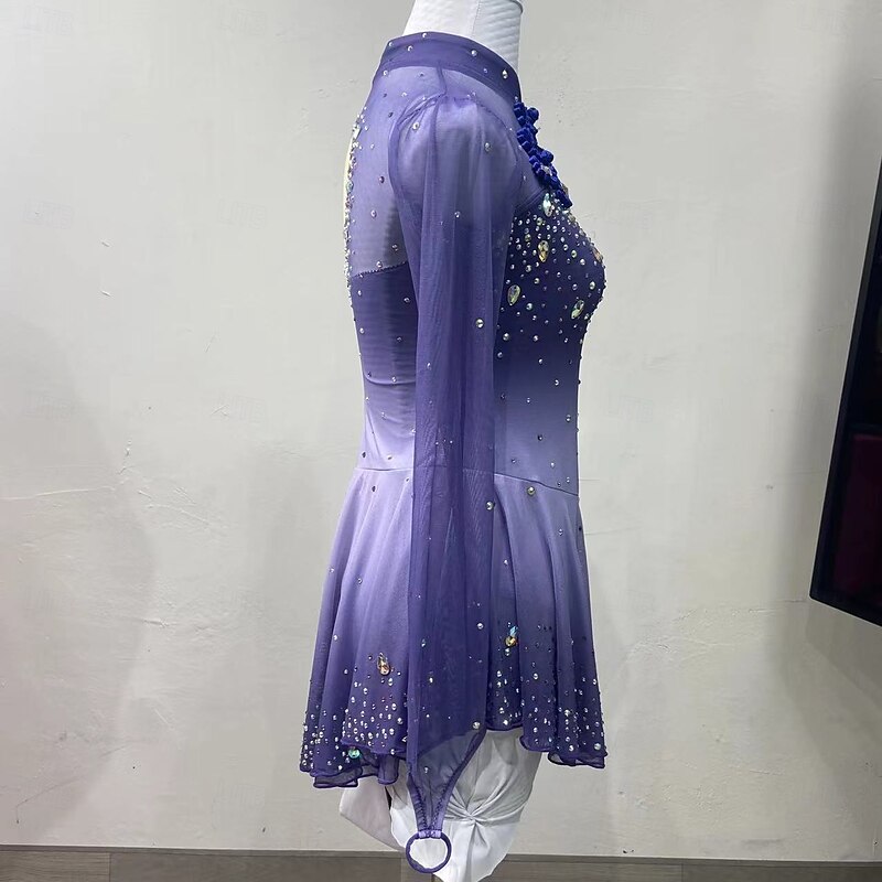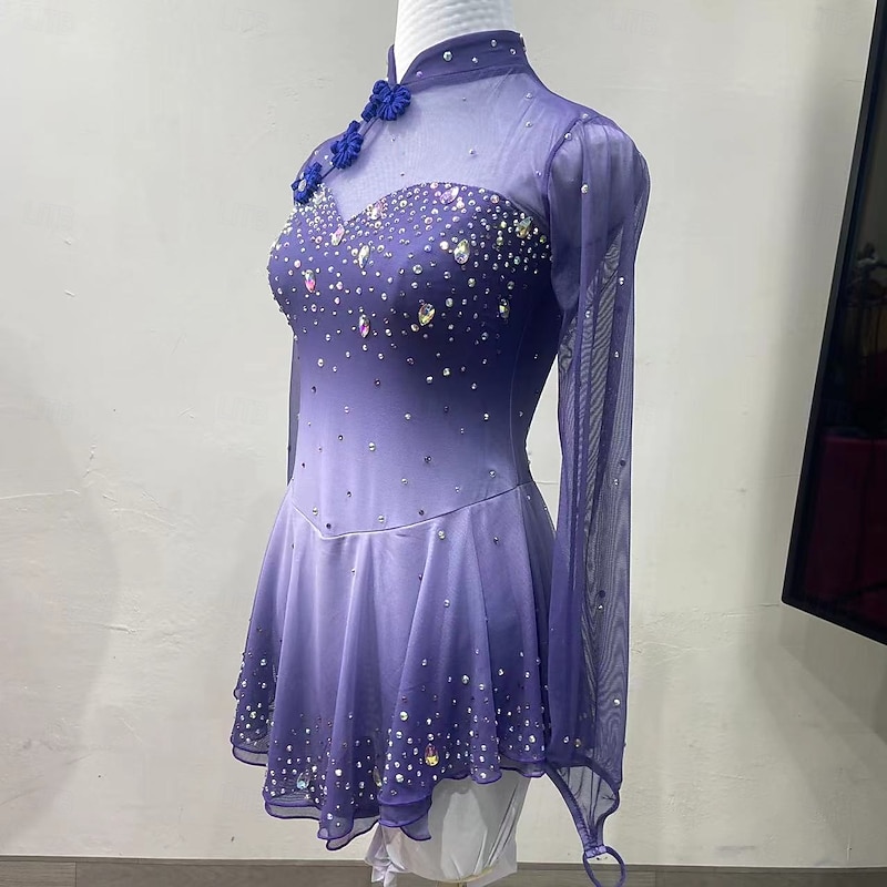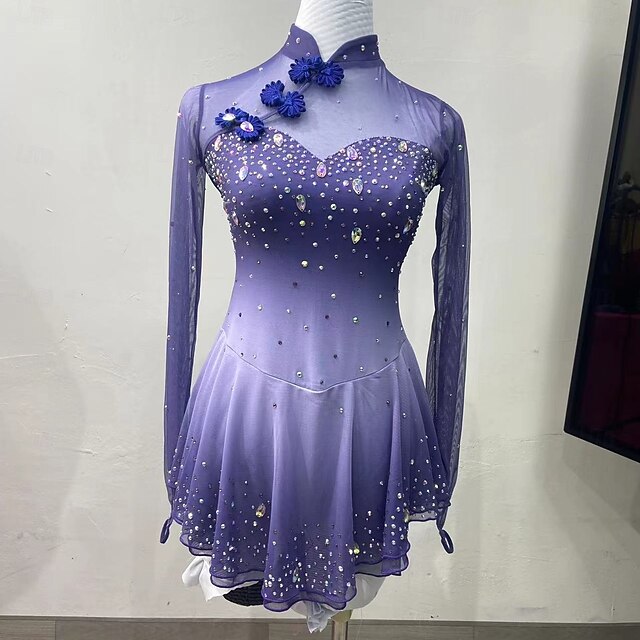 More information about Figure Skating Costumes For Adults And Children Customized With Colored Diamonds Blue Spandex Mesh Grading Performance Costumes Competition Training Gradient Rhinestone Dresses Performance Costum