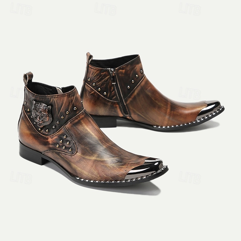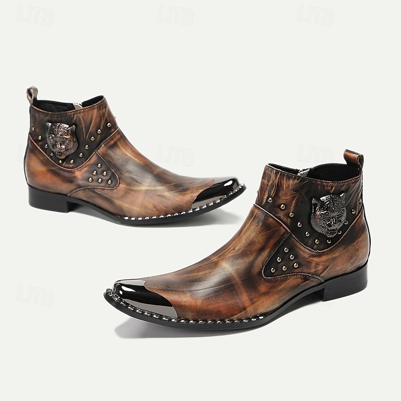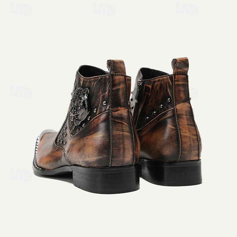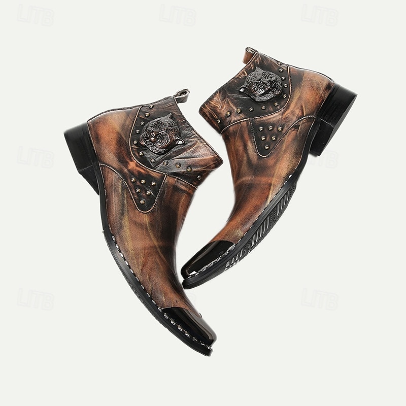 More information about Men's Premium Cowhide Leather Motorcycle Boots with Gold Tip Studded Design, Brown Gradient Finish, and Metallic Detailing–Perfect for Biker Style and Casual Outfits