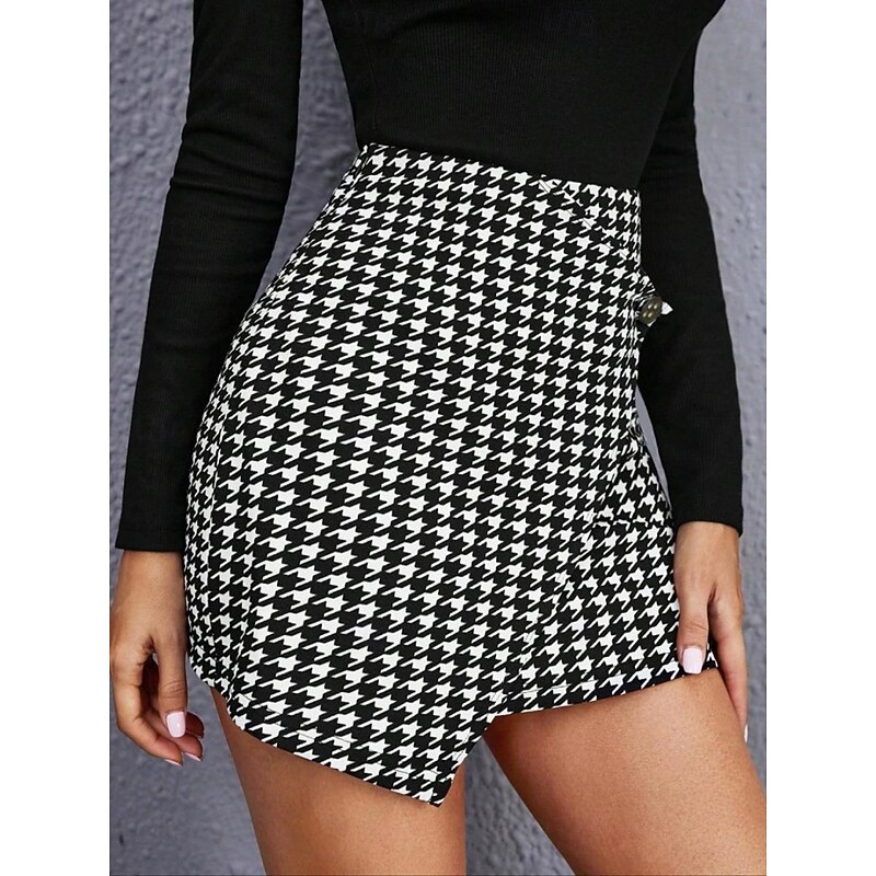 More information about Women's Skirt Bodycon Fashion Casual Mini High Waist Skirts Houndstooth Print Micro-elastic Street Daily Black Spring Polyester