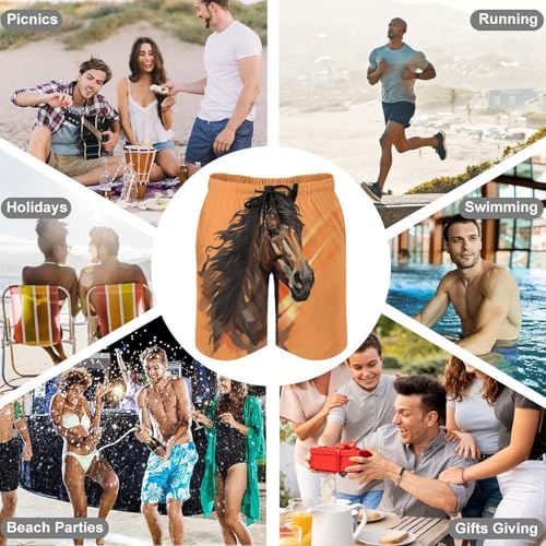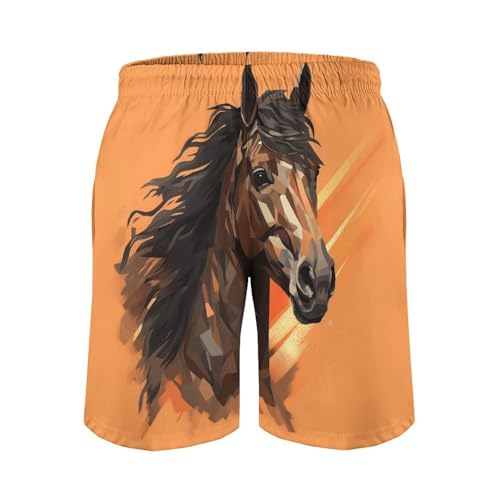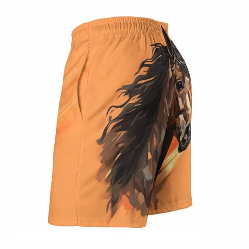 HOT ! Mens Shorts Orange Background with Horse Head Men Swim Trunks Quick-Dry Beach Shorts with Drawstring Pocket Bathing Suit