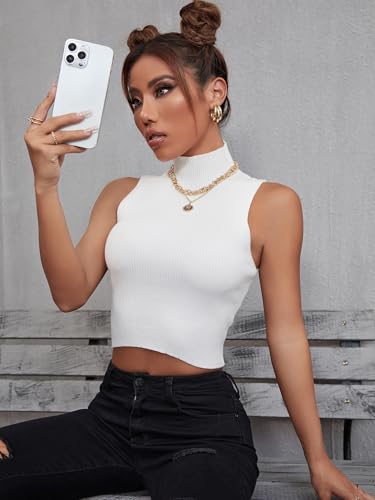 HOT ! Verdusa Women's Crop Tops Old Money Clothes Sleeveless High Mock Neck Knit Fitted Basic Tank Top