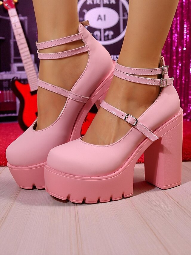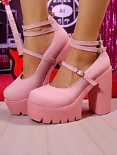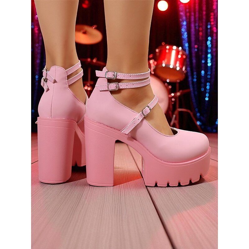 HOT ! Women's Y2K Pink Platform Mary Jane Heels – Chunky Block High Heels with Double Ankle Straps, Kawaii Lolita Shoes for Cosplay, Harajuku Outfits and Retro Party Looks