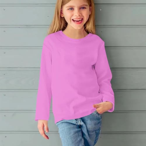 Girls Long Sleeve Shirts Cute Crewneck Tops for Teens Plain Blouses Tween Fashion Fall Casual Outfits Kids Clothes 7