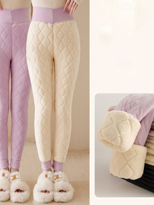 More information about Women's Leggings Cozy Fleece Lined Cozy Leggings Casual Full Length Mid Waist Plain Elastic Waist Thermal Warm Stretchy Vacation Holiday Dark-Gray Violet Black Pink Winter Regular Fit