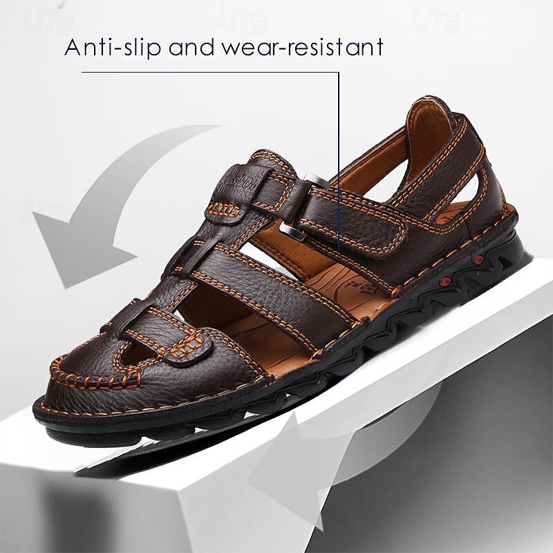 Men's Premium Leather Outdoor Fisherman Sandals with Adjustable Straps and Non-Slip Sole – Perfect for Summer Hiking and Casual Wear 16
