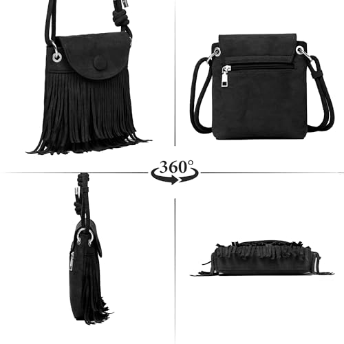 • MATERIAL: This tiny crossbody phone purse is made of soft suede & designed with two layers of soft suede fringes, it’s the perfect accessory for those who love a boho vibe. The fringes are not just decorative—they move with you, adding a fun element to your style.