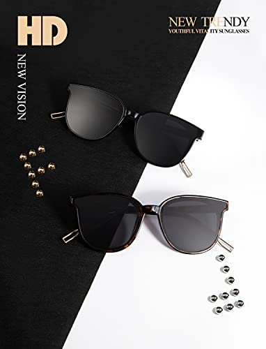 HOT ! KALIYADI Round Sunglasses for Women Oversized Trendy Sun Glasses UV400 Protection (Tortoise Frame)