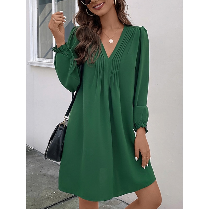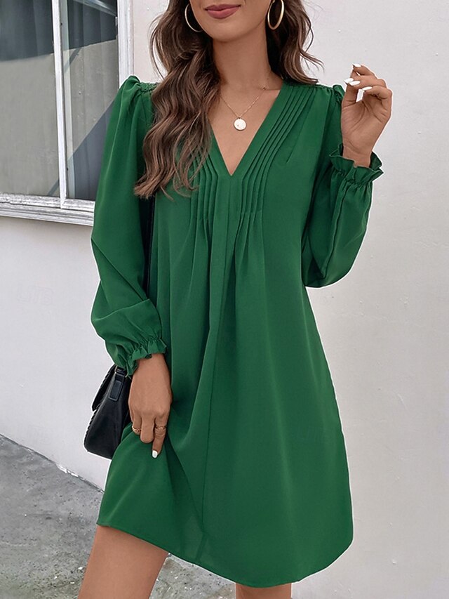 Women's Casual Dress Mini Dress Ruched Casual V Neck Long Sleeve Green Color 1