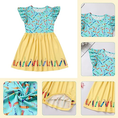 FYMNSI Toddler Kids Back to School Dress Little Girls Baby Kindergarten First Day of School Summer Casual Printed Dresses 6