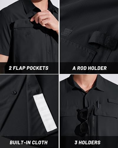 MAGCOMSEN Men's Fishing Shirts UPF 50+ Short Sleeve Sun Protection Shirts Quick Dry Cooling Button Down Shirt Hiking Safari 4