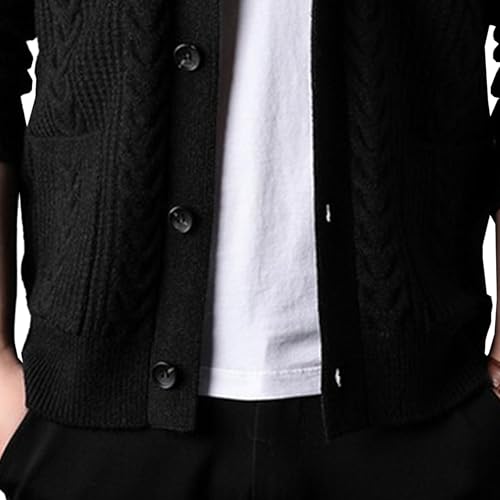 DGHM-JLMY Men's Casual Fashion Slim Knitted Coat Buttons Down Cable Knit Cardigan Sweater Shawl Collar Cable Knit Cardigans 3