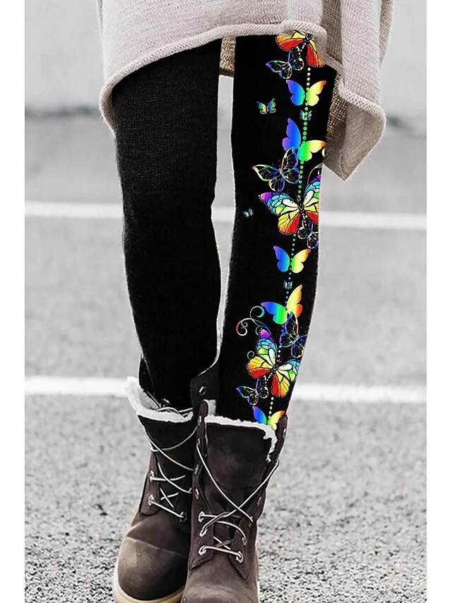 More information about Women's Leggings Vacation Vintage Ethnic Style Full Length High Waist Graphic Butterfly 3D Print Quick Dry Breathability Soft Stretchy Outdoor Home Causal Blue Purple Green Fall Slim Fit