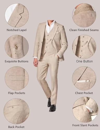 More information about Men's Linen Suits Slim Fit 3 Piece One Button Business Wedding Tuxedo Blazer Jacket Pants Set