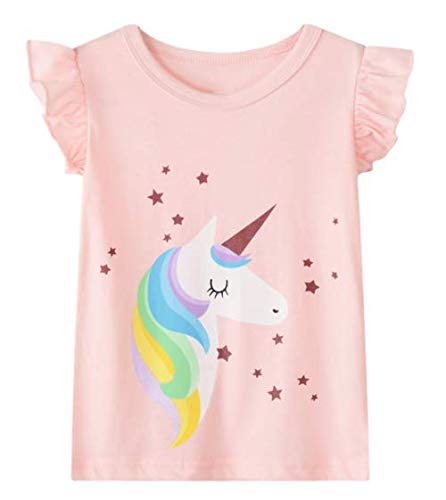 Toddler Girl Short Sleeve Tee Shirts Sets Cotton Casual Crewneck Pink Grey Unicorn Tops T-Shirts 3 Packs 2T 5