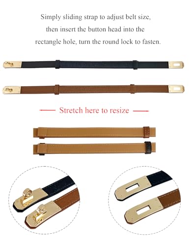 2 Pack Skinny Belts for Women Dresses Fashion Adjustable Waist Belt for Pants Jeans Business Casual Outfit 4