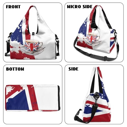 Mens Travel Bag with Shoe Compartment, British Flag Mens Gym Bag with Wet Dry Pocket, Double Zipper, Lightweight Sports Bag for Office Weekend Travel Shopping 4