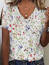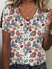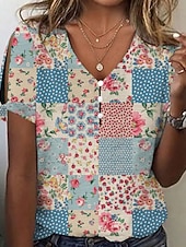 More information about Women's T Shirt Floral Casual Short Sleeve V Neck Regular Tops Daily Going out Print Pink Blue Green Summer