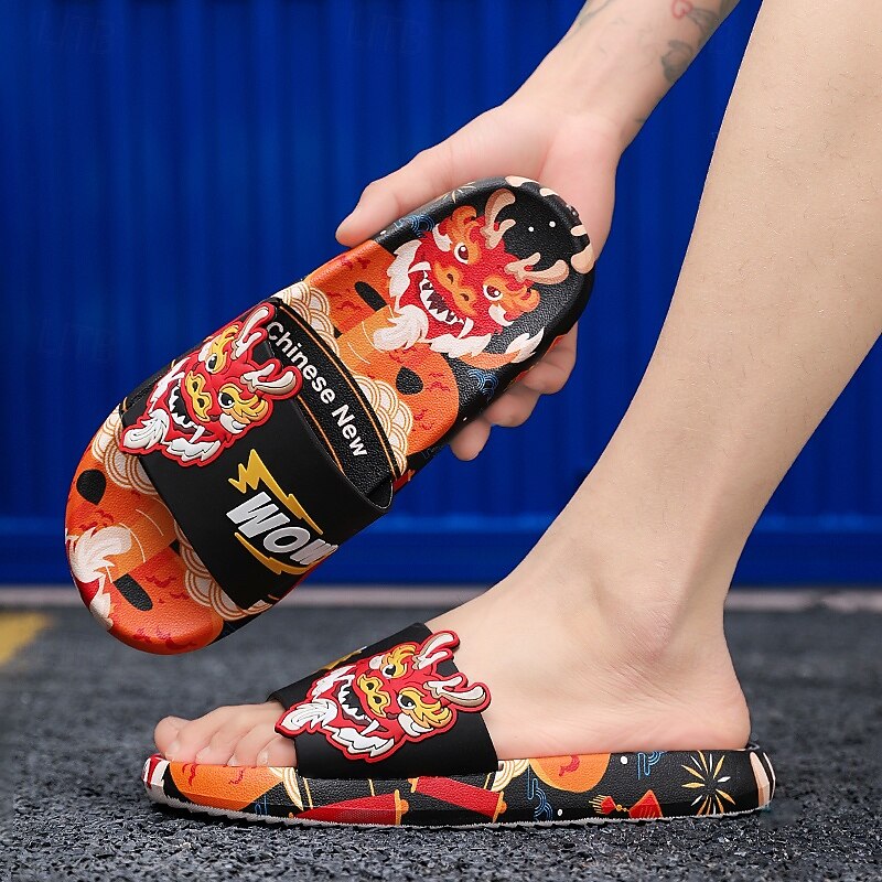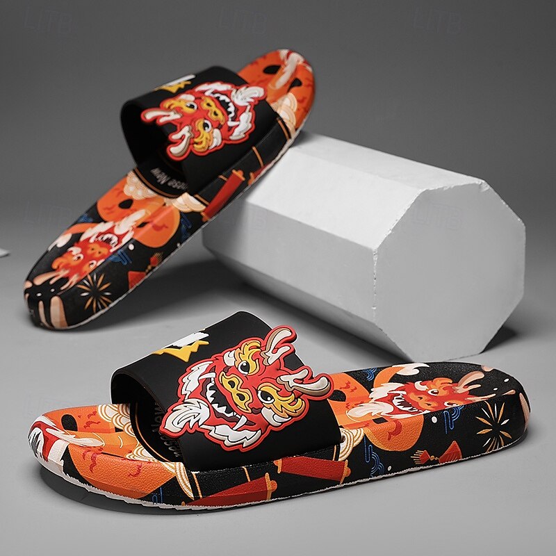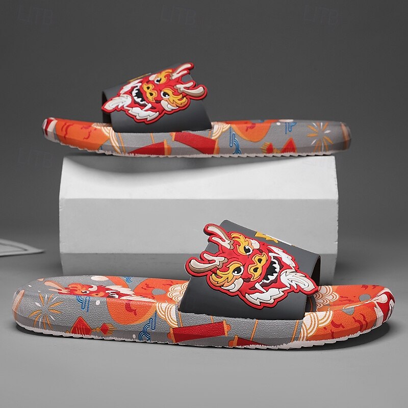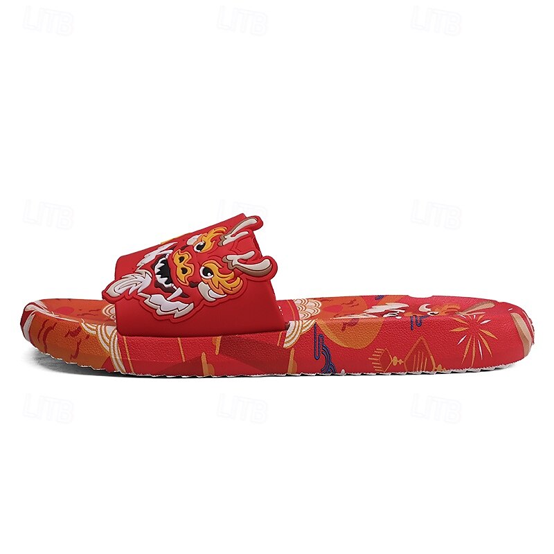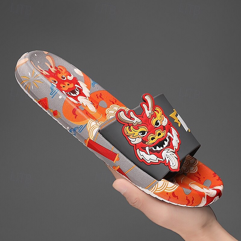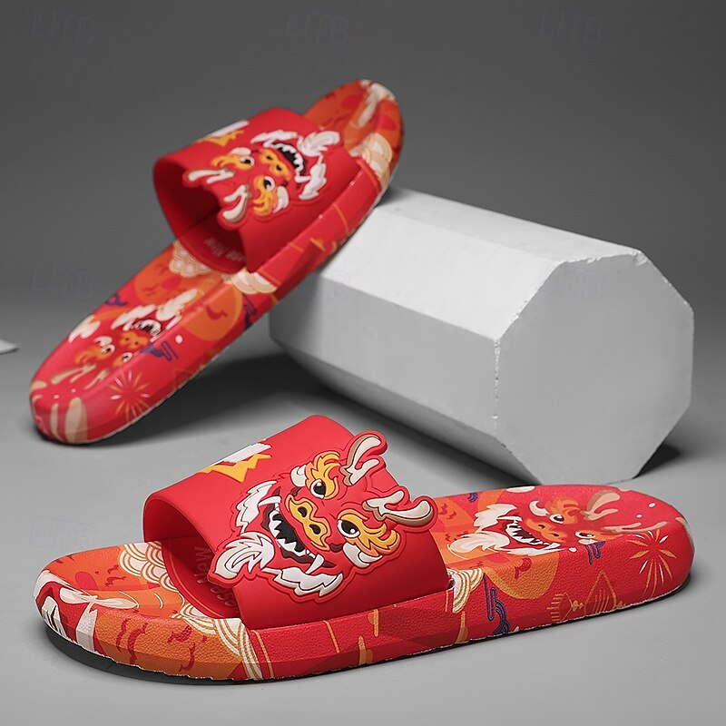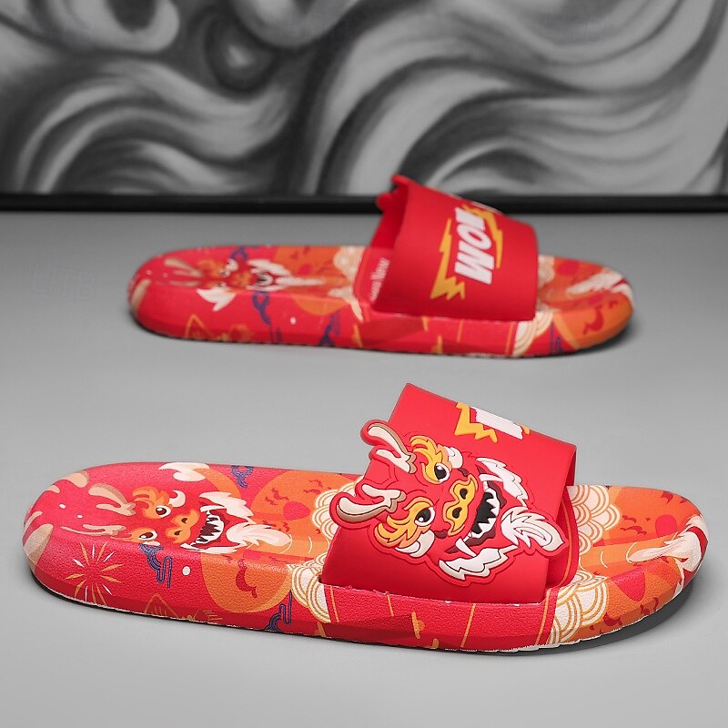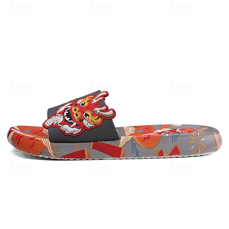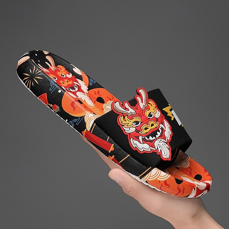 More information about Men's Red Dragon Print Slide Sandals with 3D Dragon Design, Casual Style for Summer and Festivals