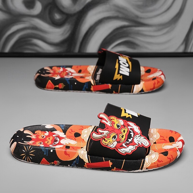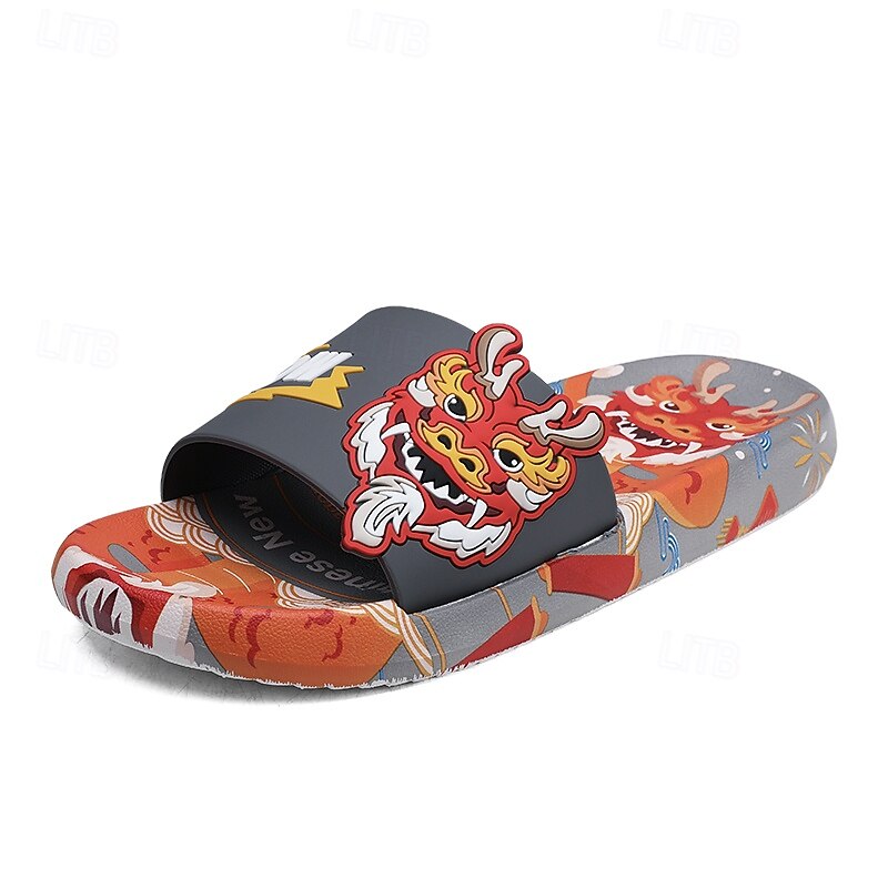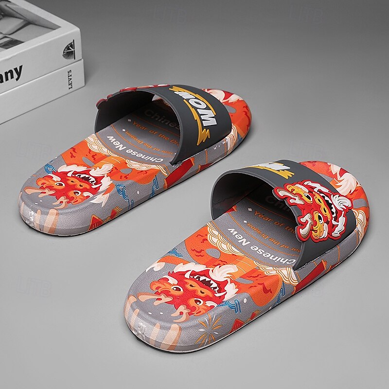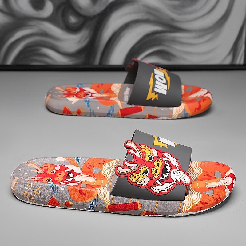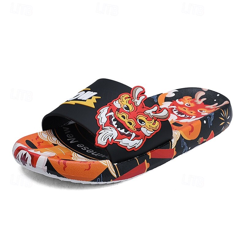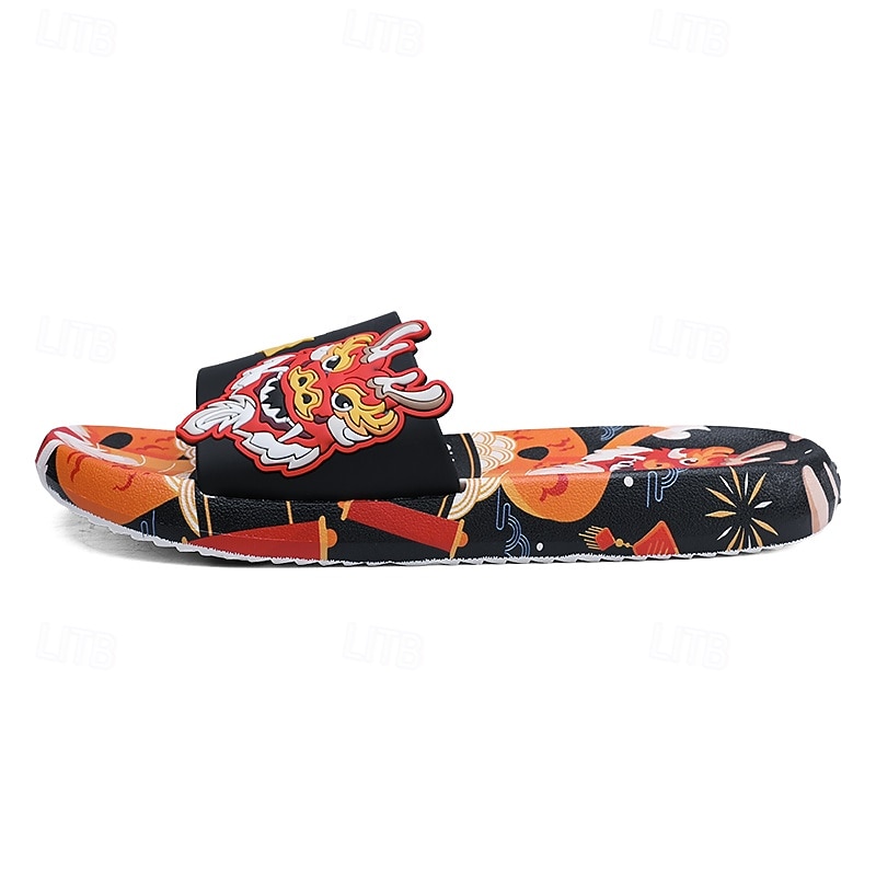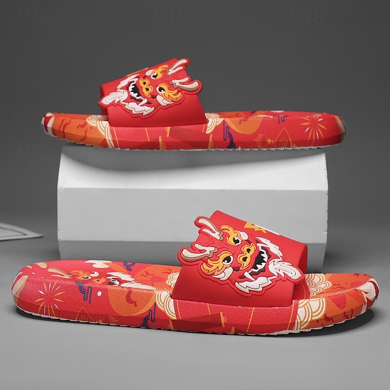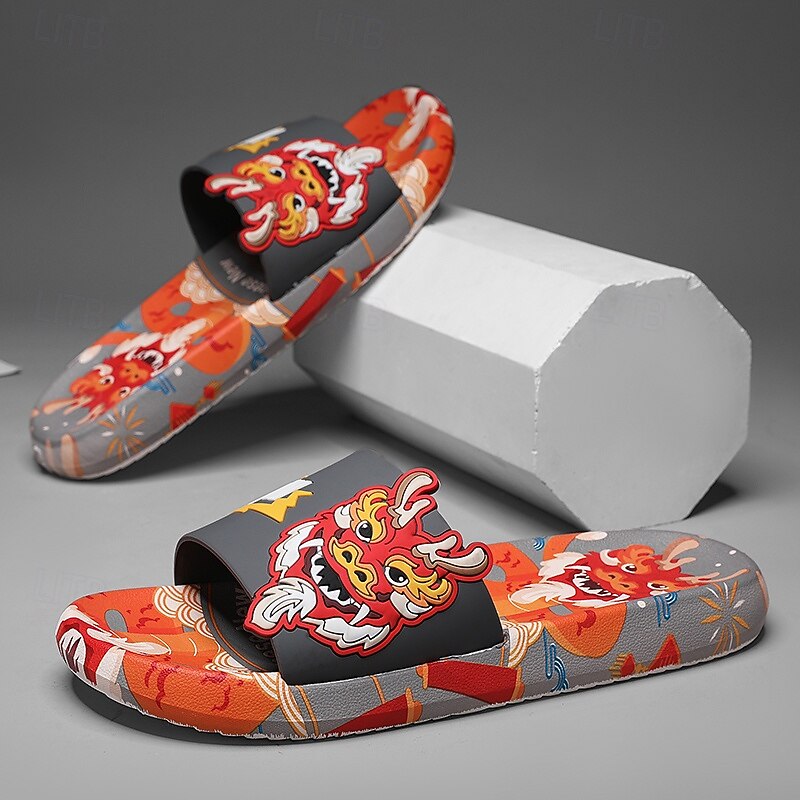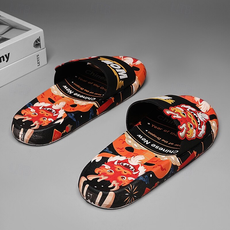 More information about Men's Red Dragon Print Slide Sandals with 3D Dragon Design, Casual Style for Summer and Festivals