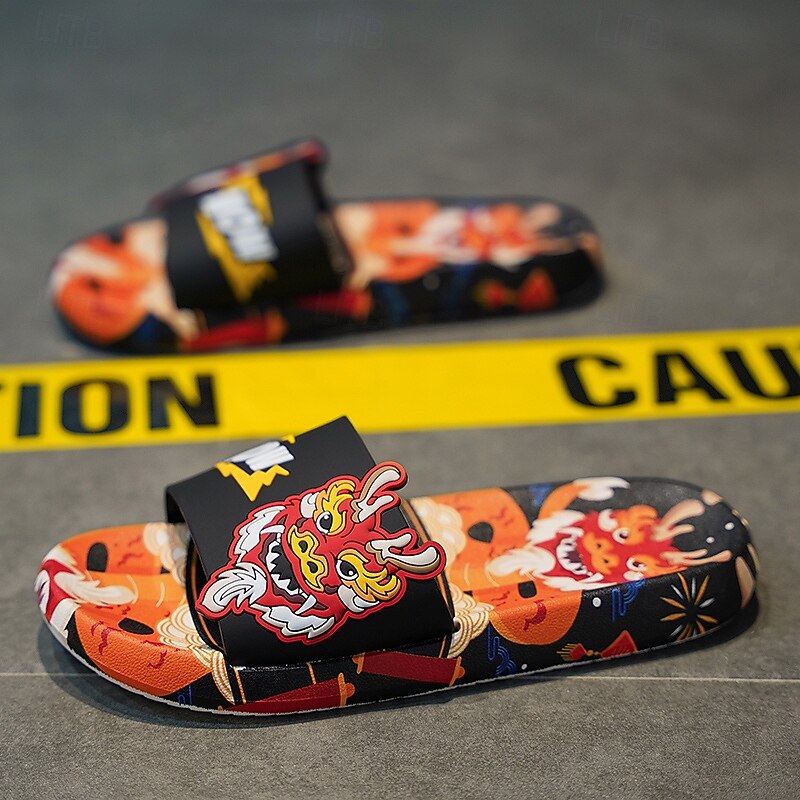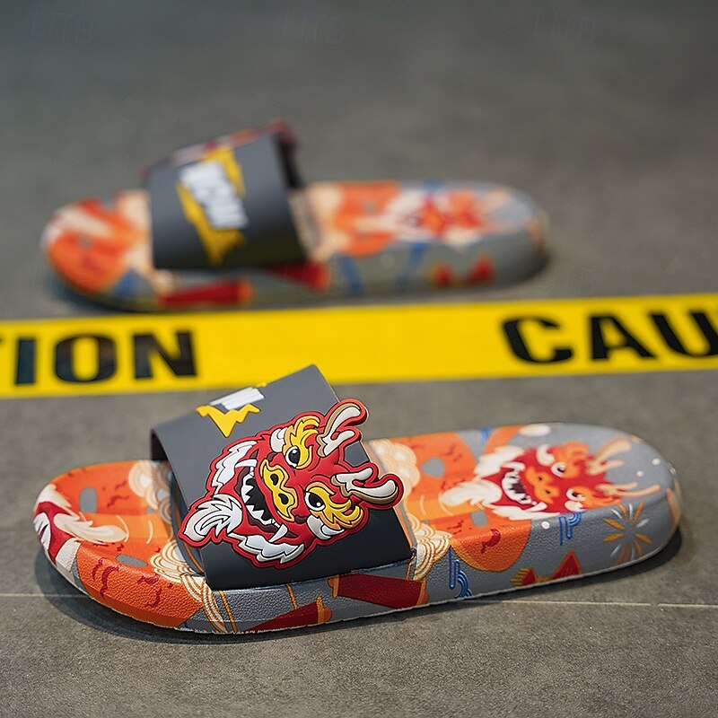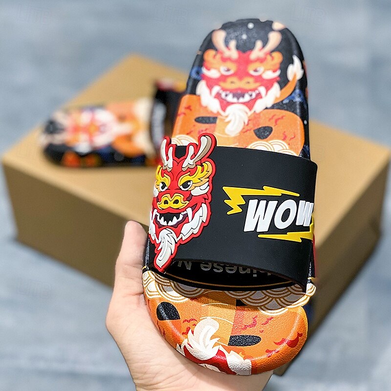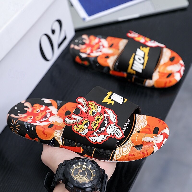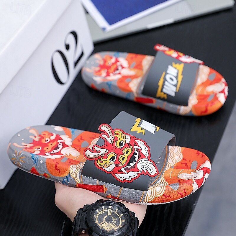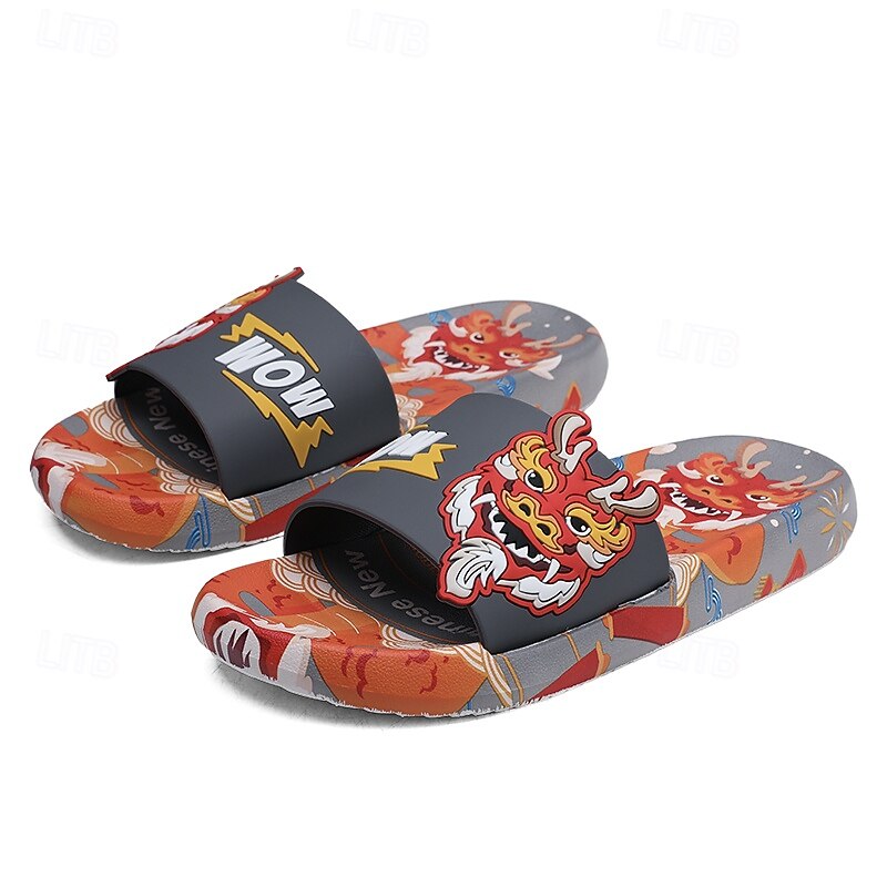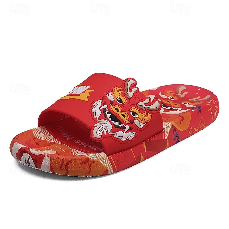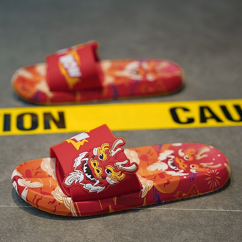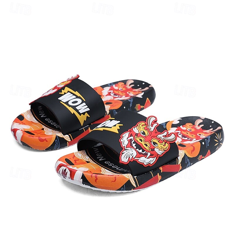More information about Men's Red Dragon Print Slide Sandals with 3D Dragon Design, Casual Style for Summer and Festivals