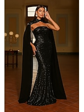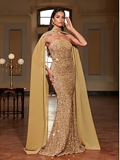 More information about Black Tie Gold Cape Dress Mermaid / Trumpet Velvel Sequin Evening Gown Elegant Dress Formal Wedding Floor Length Sleeveless with Chiffon Cape 2025