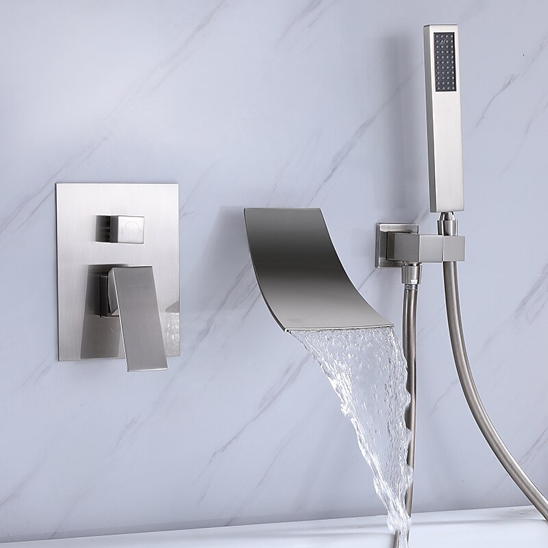 More information about Wall Mounted Bathtub Faucet with Hand Shower, Modern Wall Installation with Ceramic Valve, Bathtub Filling Shower Mixer Faucets, Single Handle Cascading Faucet