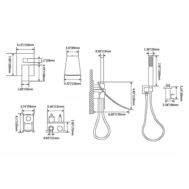 Wall Mounted Bathtub Faucet with Hand Shower, Modern Wall Installation with Ceramic Valve, Bathtub Filling Shower Mixer Faucets, Single Handle Cascading Faucet 11