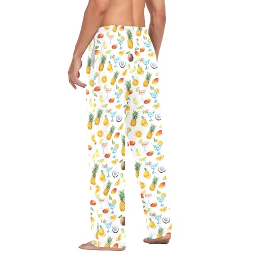 Mens Cotton Pajama Pants Sleep Lounge Pj Bottoms Sleepwear with Pockets Drawstring S Tropical Cocktail Fruits 5