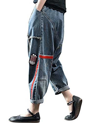 Women's Casual Harem Jeans Elastic Waist Denim Pants Trousers 5