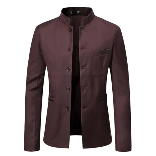 Men Chinese Style Stand Collar Blazer Vintage Slim Fit Business Suit Jacket 1