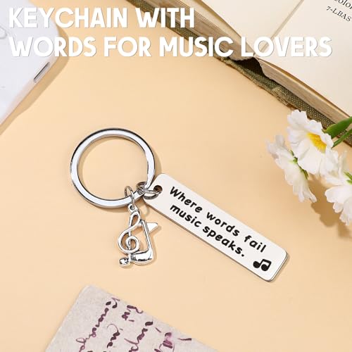 • Gifts for Music Lovers: the package includes 1 music scarves printed with music notes, 1 music keychain, 1 music bookmark printed with [Where words fail music speaks], with a gift box, showing your passion and love for music