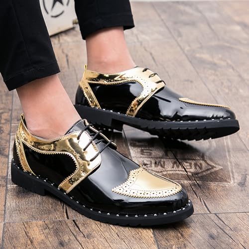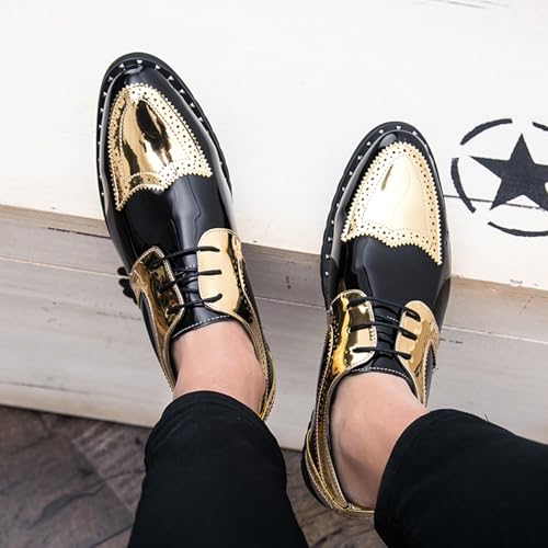 • 【Fashion Style】:This pair of men's patent leather patchwork carved brogue oxfords shoes is two color splicing of british style,the heel height is 1.37 inches, making you look taller.Every detail is carefully carved to show unparalleled exquisiteness. The classic design concept combines modern trend elements, allowing you to stand out in business occasions and become the focus of everyone's attention.