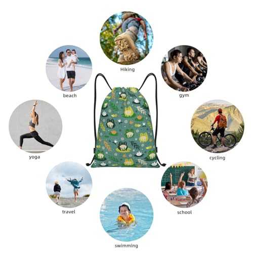 Cute Frog Sports Drawstring Backpack Adjustable Bag Casual Backpack Sport Travel Hiking Daypack for Women Men 5