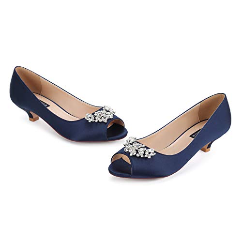 ERIJUNOR Women Comfort Low Kitten Heels Rhinestones Peep Toe Wedding Evening Party Shoes Dress Pumps 1