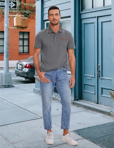 • Versatile Design: Men's polo shirts with a stylish front pocket button design. Polo shirt with pocket made from polyester, cotton, and spandex blend.
