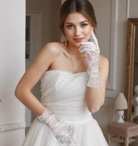 • Classic Design: These white lace gloves feature a timeless design with delicate floral patterns, perfect for weddings and formal events. The classic style adds a touch of elegance to any outfit;