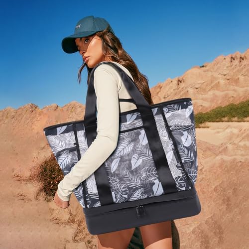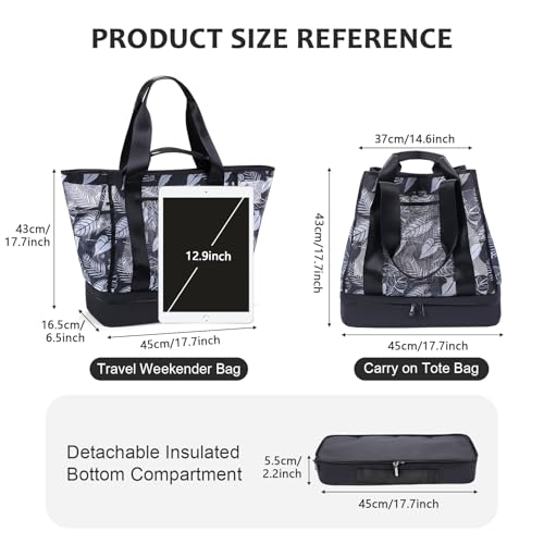 HOT ! CONTAIL 37L Mesh Floral Carryall Bag with Detachable Shoes Compartment/Insulated Cooler,Women Weekender Gym Duffel Bag