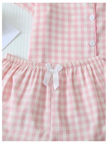 Verdusa Women's Plaid 2 Piece Cute Pajama Sets Short Sleeve Button Down Shirts with Shorts Loungewear 4